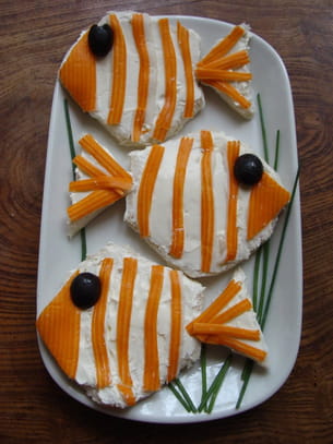 Certes, le surimi n'est pas un poisson (mais réalisé avec de la chair de poisson), mais pour les plus réfractaires, commencez déjà par réaliser ces tartines amusantes et appétissantes pour l'apéritif ou l'entrée. Une bonne entrée en matière lorsque votre enfant ne veut pas entendre parler de poisson. Et qui sait ? Peut-être que ça lui donnera l'envie de goûter un vrai poisson ! Le plus : cette recette est parfaite pour un repas d'anniversaire ou un événement festif où sont conviés les enfants.