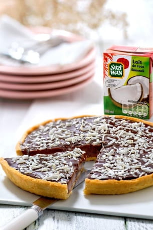 Tarte au chocolat, caramel et lait de coco