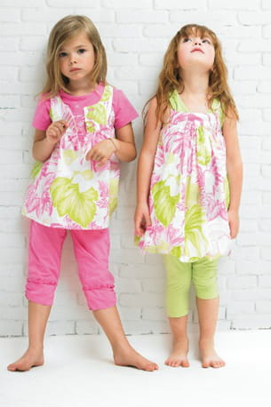 Cet été, honneur aux couleurs ! En robe ou top-pantacourt, votre fille apportera de la gaité partout où elle passera. On aime l'association du banc, rose et vert... Un vrai bonbon !