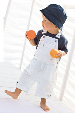 Quoi de plus craquant qu'une salopette pour votre bout de chou ? Votre chérubin fera tourner les têtes avec cet ensemble salopette blanche assortie à un tee-shirt bleu marine. On n'oublie pas le fameux bob pour le style mais surtout pour le protéger du soleil !
