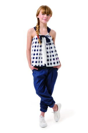 Honneur aux pois ! Sur les bancs de l'école ou pendant les vacances, votre fille appréciera ce top estival et très féminin orné d'un nœud sur le devant et de gros pois bleu roi sur fond blanc. Pour un look un peu sporty mais toujours tendance, elle l'assortira avec un sarouel en denim et des petites baskets.