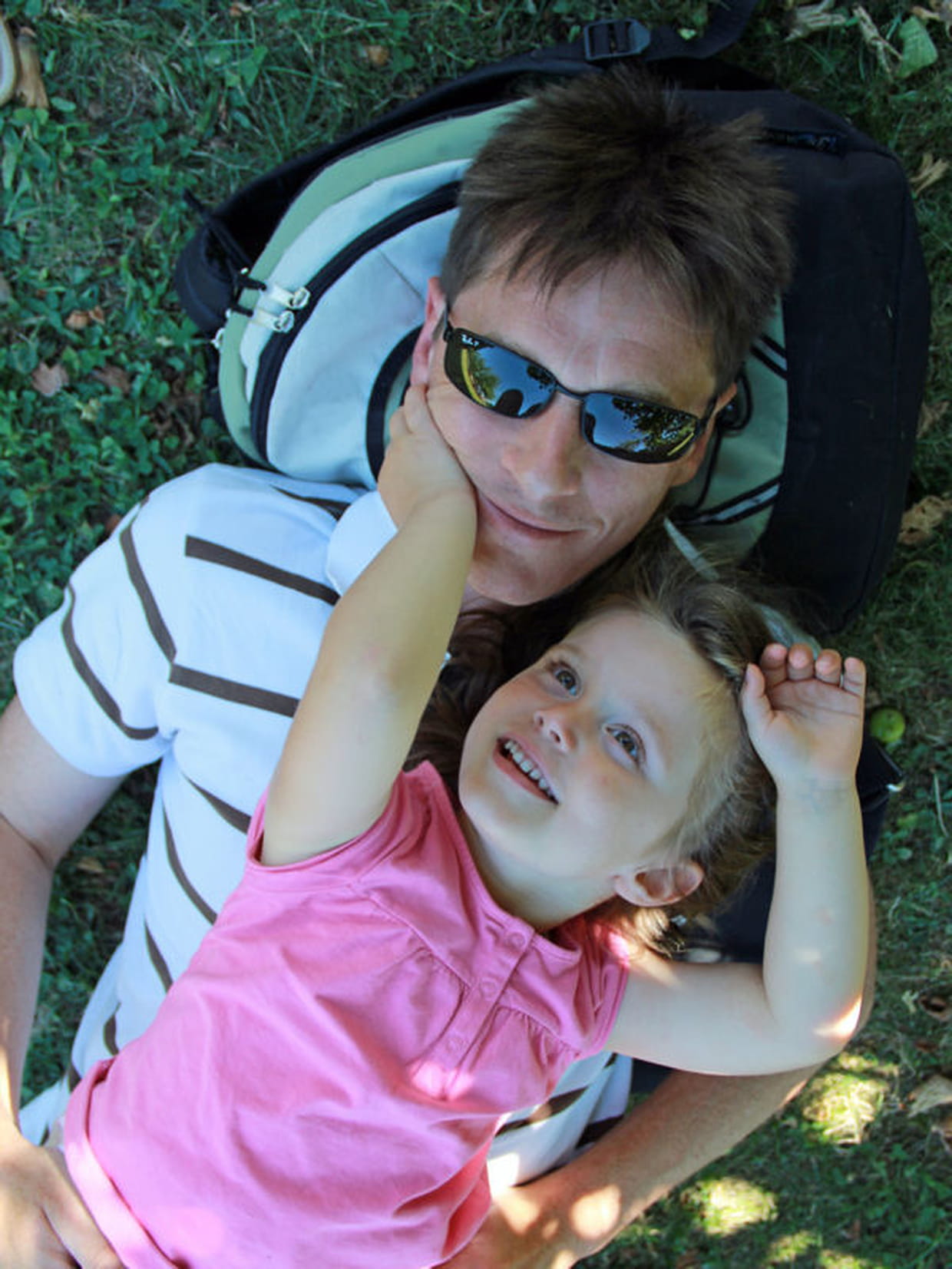 Empreinte de douceur, cette photo a été prise après un pique-nique. Papa et fillette s'illustrent dans un pur moment de tendre complicité.