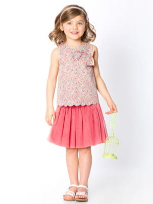 Cette saison, le liberty est roi ! Cyrillus propose un look très frais avec un top accessoirisé d'un nœud à l'encolure porté sur une jupe en tulle rose.