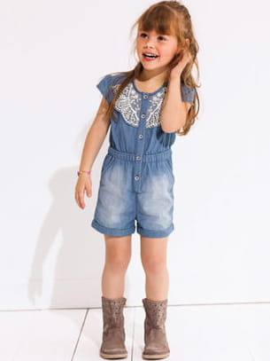 Adorable, cette combishort avec de la dentelle sur le buste ! Chic, elle se prête aussi bien à une journée d'école qu'un dimanche en famille.