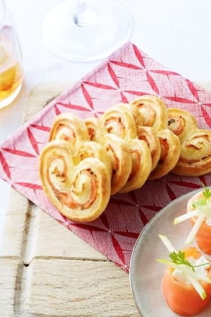 Pour les amateurs de poisson, les palmiers au saumon sont un régal ! A déguster avec une salade et des crudités par exemple.