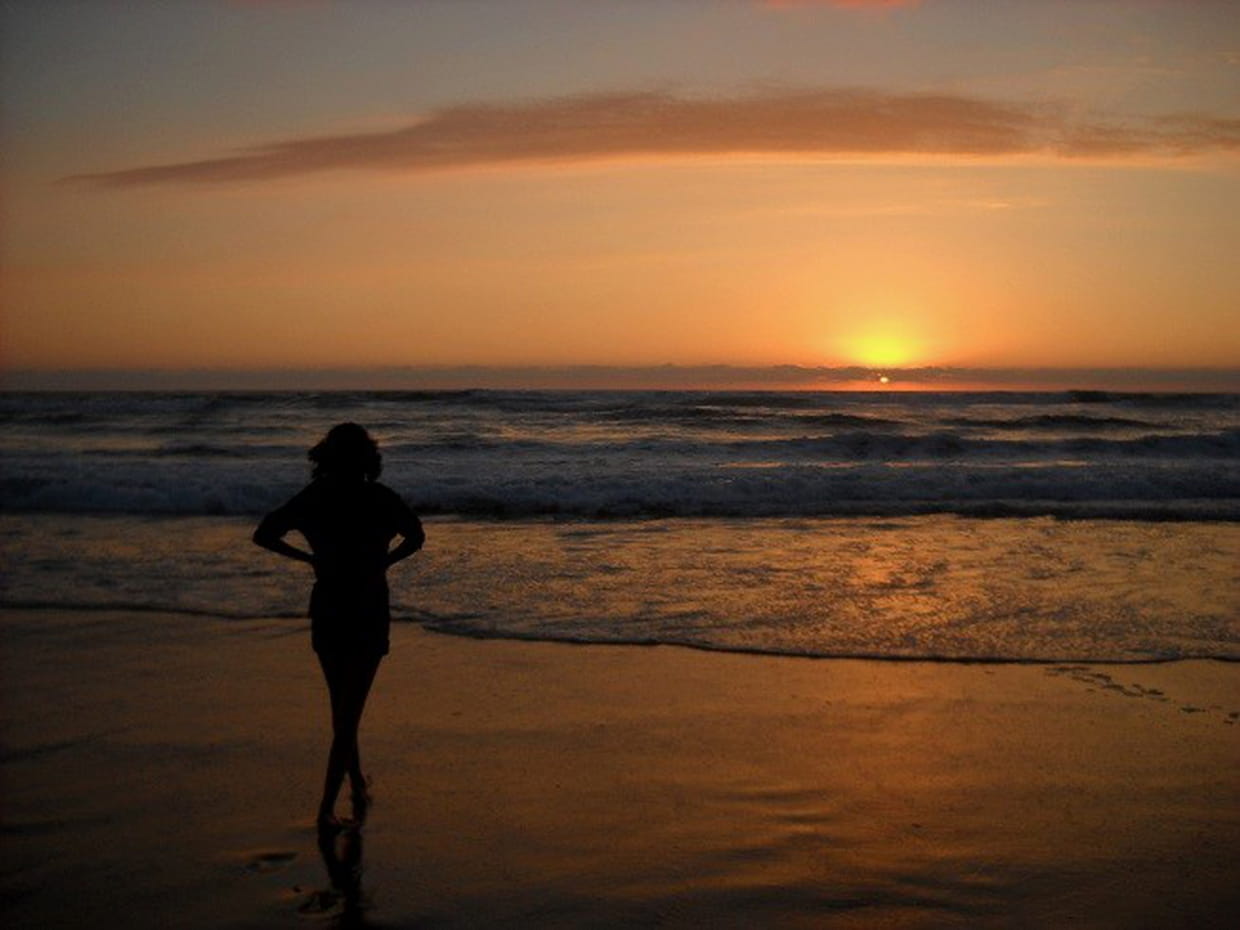 Cette fillette profite du coucher de soleil de Mimizan, en Aquitaine et pourra bientôt profiter du Parc Astérix car elle gagne deux entrées.