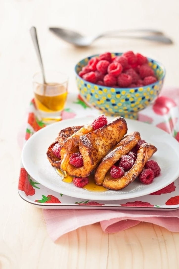 Envie de changer du pain perdu traditionnel ? Apportez-lui de la gourmandise et du peps avec des framboises toutes fraîches (ou autres fruits de saison) et du miel pour que le pain caramélise à merveille... Un régal !