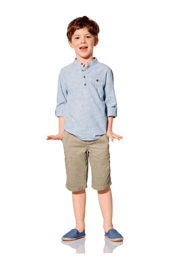 Avec cette blouse légère, les petits garçons n’auront pas trop chaud. Le col mao et les boutons sur le devant sont japonisant.