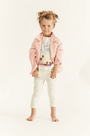 Ce blouson rose poudré va aussi bien avec un jean qu’avec un pantalon blanc. Ressemblant à un perfecto, il donnera une allure rock à votre fille qui ne le quittera plus !