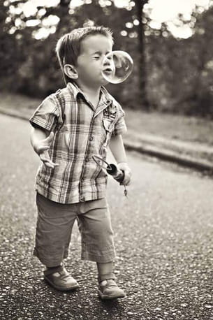Si vous avez un appareil permettant de faire des photos en rafales, utilisez ce mode pour capturer un instant, comme sur cette photo où l'on voit un enfant avec une bulle de savon sur le point d'éclater.