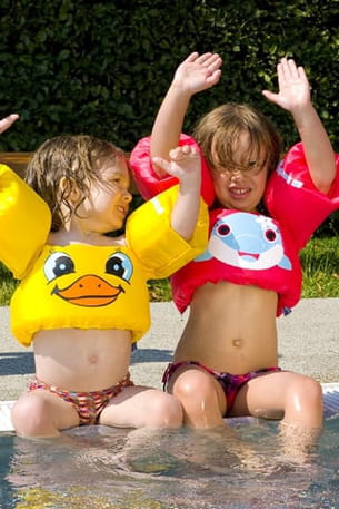 Pour sa première baignade en mer, optez pour les brassards 2-en-1 de Sevylor, recommandés pour les enfants qui ne savent pas encore nager. Cette ceinture-brassards appelé aussi "Puddle Jumper", permet aux petits de patauger en toute sécurité (toujours accompagné d'un adulte), et possède une fermeture dans le dos, afin que l'enfant ne puisse pas l'enlever seul. Un moyen idéal pour lui apprendre ses premières brasses en toute liberté.