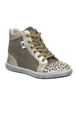Les petites filles vont adorer porter ces jolies baskets montantes aux couleurs claires et le bout léopard. Elles se portent aussi bien avec un pantalon et un jean qu'avec des jupes ou des robes. Les enfants seront à l'aise tout en restant habillés pour aller à l'école.