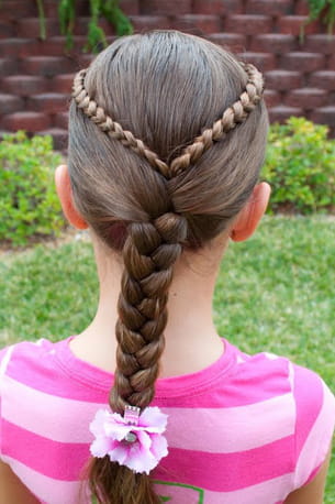 Les petites filles vont adorer cette natte qui sort de l'ordinaire. Simple à réaliser, il vous suffit simplement de faire deux petites nattes sur le devant de chaque côté, et de prendre le reste de la chevelure en joignant les deux tresses pour en créer une sur la longueur.