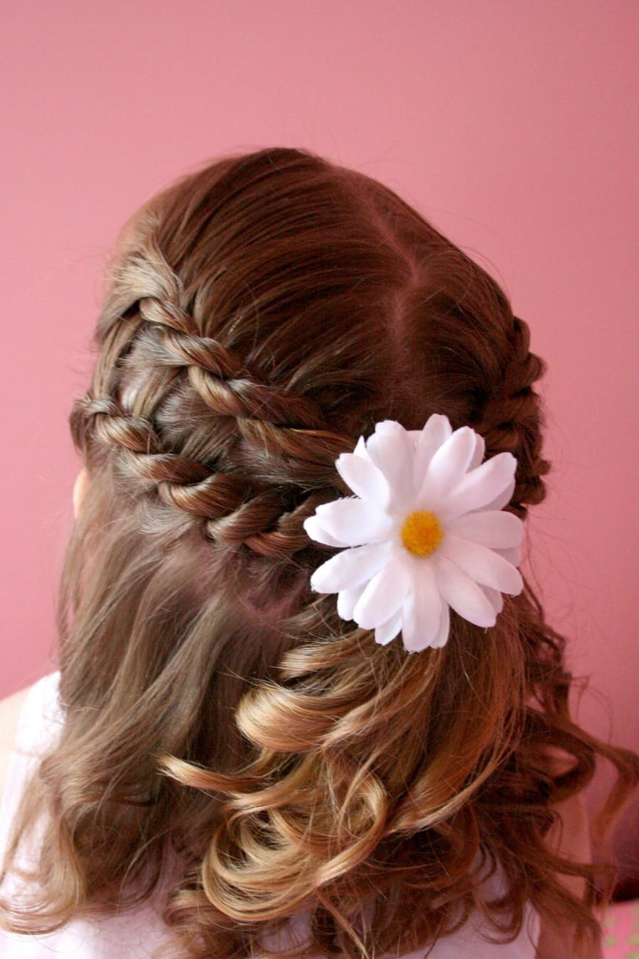 Sur le même principe que les tresses africaines, version torsadée, cette coiffure sublimera les petites filles en toutes occasions. Procédez donc dans un premier temps par la réalisation de deux tresses africaines parallèles, de chaque côté de la tête. Réunissez ensuite les différentes mèches à l'aide d'une attache à fleur pour un effet bohème-chic.