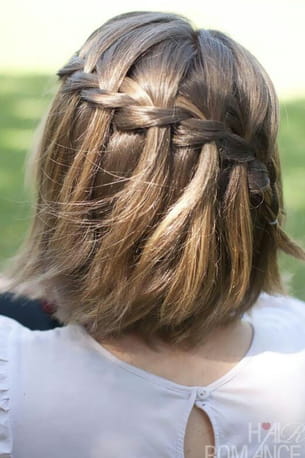Votre petite fille à les cheveux courts ? Optez pour cette tresse originale et sophistiquée, pour tous les jours ou les grandes occasions. Pour réaliser cette coiffure, commencez par prendre deux mèches de cheveux sur le côté haut de la tête puis faites votre tresse en descendant en biais, et en ajoutant chaque fois une autre mèche prise sur le dessus.