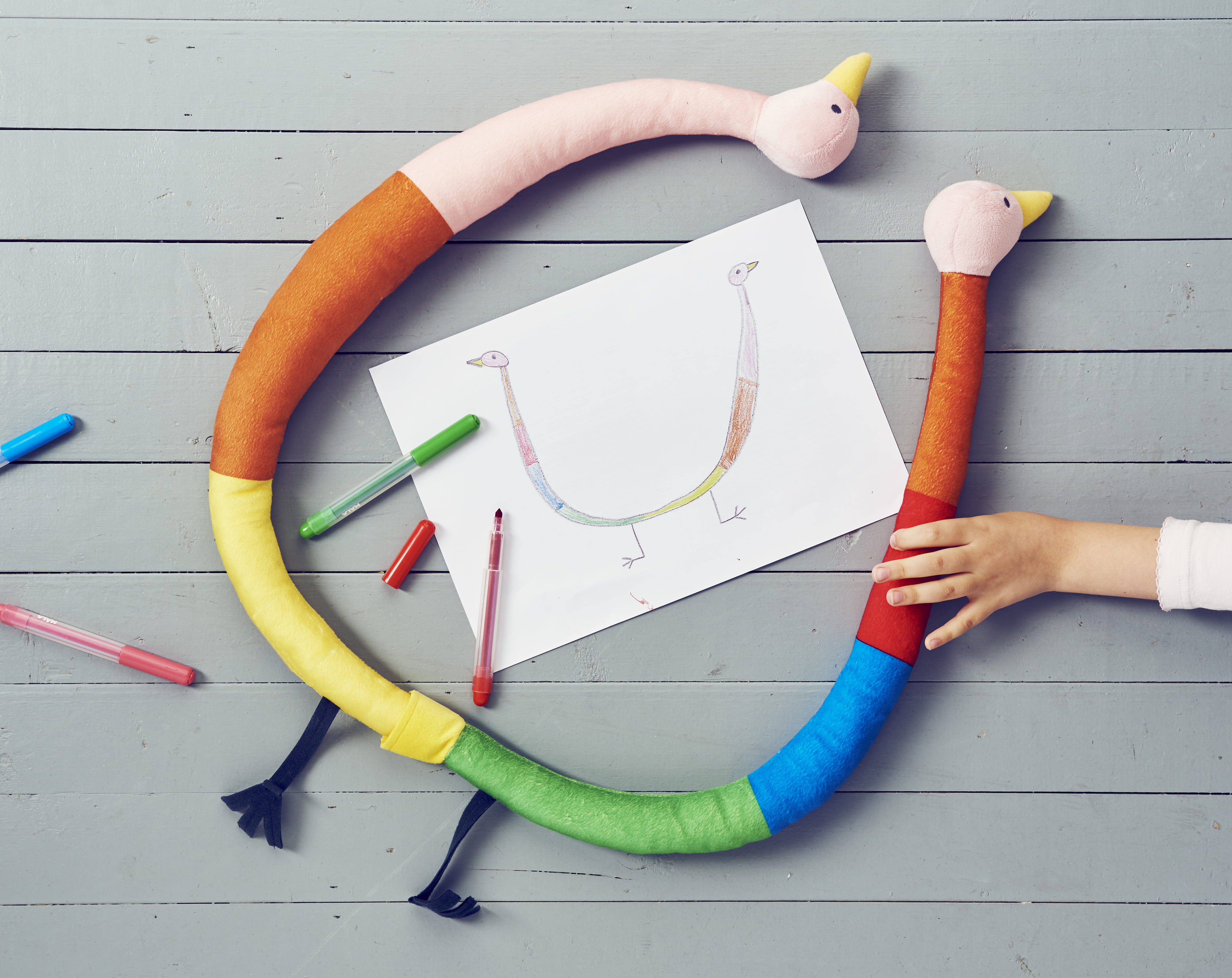 [Mise à jour du 14/12/2016]. Ikea s'engage une fois de plus pour soutenir les enfants défavorisés en lançant sa campagne "Des peluches pour l'éducation". Le principe ? Des enfants du monde entier ont imaginé un compagnon attendrissant. Parmi 52 000 dessins reçus en 2016, dix personnages ont été sélectionnés par la marque suédoise qui leur a, à son tour, donné vie. La gamme de peluches Sagoskatt compte donc parmi elle une grenouille avec un nez de cochon et une queue de singe, un hibou rose, un monstre rouge, un dinosaure vert, un oiseau à deux têtes, un canard ou encore un soleil souriant... tous sont devenus de véritables peluches qui envahissent déjà les magasins et les maisons à travers le monde pour le plaisir des petits et des grands.