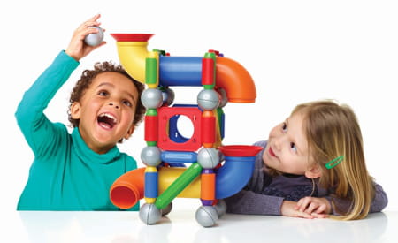 Avec ce jeu de construction, l'assemblage des tubes et des entonnoirs devient un jeu d'enfant. Les tout-petits pourront ensuite s'amuser à faire rouler des boules dans ce circuit géant. Idéal dès 3 ans, le Toboggan XL de SmartMax est composé de 46 pièces dont 13 boules aimantées, 15 bâtonnets courts et 4 longs, 2 tubes droits et 4 courbés, 6 fenêtres et 2 entonnoirs.