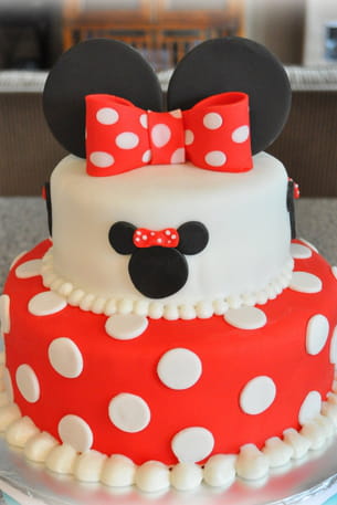Votre enfant est fasciné par les personnages de Disney ? Inspirez-vous du gâteau de Minnie pour l'anniversaire de votre petite fille. Pour cela, vous aurez besoin de deux moules de taille différentes pour pouvoir superposer vos deux gâteaux. Recouvrez-les de pâte à sucre de couleurs rouge et blanche et ajoutez quelques détails qui rappelleront la plus célèbre des petites souris.