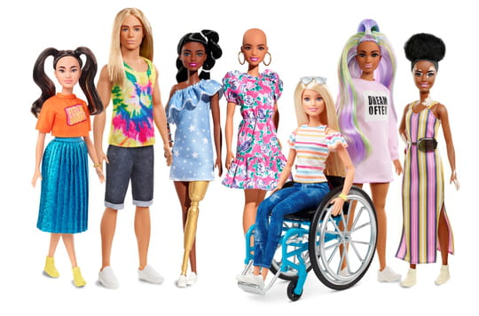 Cette année, Mattel élargit sa gamme sous le signe de la diversité. "Ce qui nous rend différents nous rend plus beau" précise la marque à l'occasion du lancement de ses nouvelles poupées. Barbie sans cheveux et son amie atteinte de vitiligo, se tiennent aux côtés d'une Barbie portant une prothèse dorée et d'une autre en fauteuil roulant. On retrouve également Ken, qui apparaît tantôt avec des cheveux longs implantés, tantôt avec des cheveux roux. "Cette grande variété a été pensée pour inspirer les enfants à imaginer encore plus d'histoires et à trouver une poupée qui leur parle" précise la marque dans un communiqué. Aujourd'hui Barbie compte désormais 5 morphologies différentes, 22 couleurs de peau, 76 coupes de cheveux, 94 couleurs de cheveux et 13 couleurs d'yeux. Quant à Ken, il existe dans 4 morphologies, 18 visages, 13 couleurs de peau, 9 couleurs d'yeux et 22 couleurs de cheveux. Les petits et grands vont enfin pouvoir trouver les poupées qui leur ressemblent, et s'imaginer des histoires plus réalistes en formant les couples de leur choix !