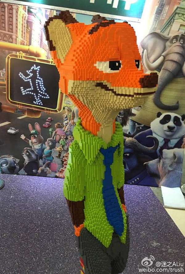 Lors du lancement d'une exposition de Lego en Chine, l'artiste Zhao, qui avait réalisé la statue de Nick, le renard de Zootopie, a vu son oeuvre entièrement détruite par un enfant maladroit. Elle était estimée à 13600 euros.