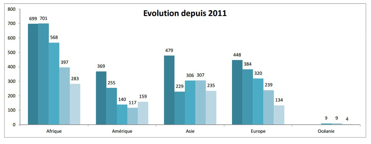 En France, les adoptions internationales chutent de près de 80% en 10 ans. Les couples français ont adopté seulement 815 enfants étrangers l'an dernier (contre 1 069 en 2014), soit pratiquement autant que les 800 confiés à l'aide sociale à l'enfance (ASE) chaque année. Cette chute de l'adoption internationale (-80 % entre 2004 et 2015) est au plus bas depuis trente ans. C'est le constat que fait le Ministère des Affaires étrangères dans son rapport basé sur les statistiques de 2015 sur l'adoption internationale en France.