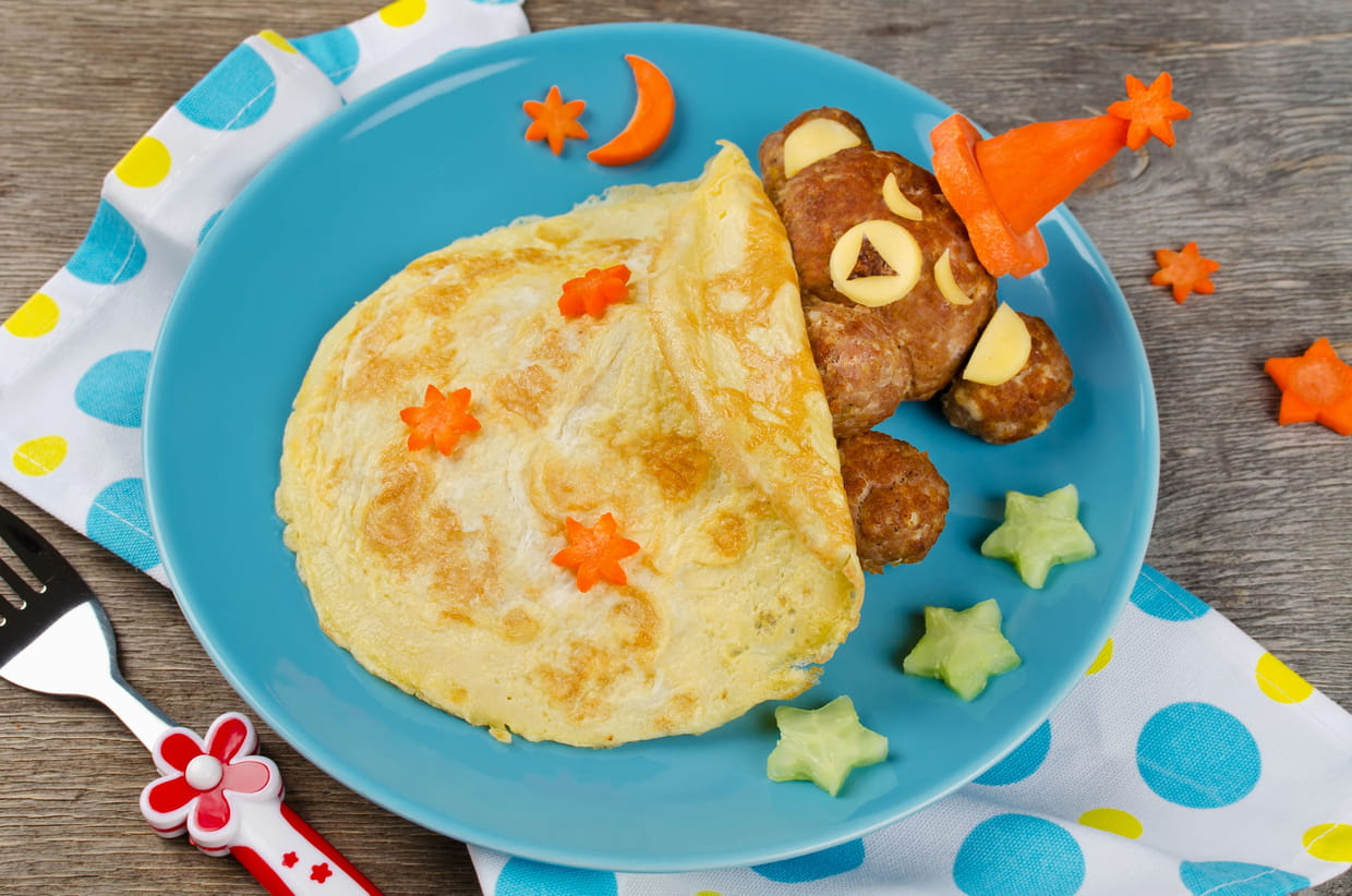 Voici un plat idéal pour le dîner. Le petit ourson fait de boulettes est recouvert d'une couverture en omelette. Après avoir bien manger, les enfants auront-ils moins de mal à aller dormir, comme ce tendre personnage ?