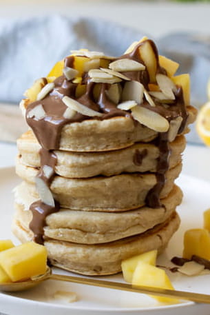 Vegan, ces pancakes à la pomme recouverts de pâte à tartiner chocolatée vont faire fondre petits et grands.