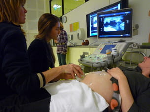 Echo en public aux environs de la 12e semaine (j'avais accepté de faire le cobaye lors d'une journée portes ouvertes sur les métiers de l'hôpital pour les lycéens). © Caroline