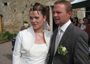 "Je me souviendrai toute ma vie de cette demande... C'était le 17 février 2008. Trois mois après, nous nous marions civilement. Des noces intimes, une petite réception sans prétention : 35 invités, une salle fleurie. Je voulais cette union car nous avons donné à notre fille le nom de son père, et du coup, je me sens un peu seule...Souhait exaucé ce samedi 17 mai 2008, certes un peu pluvieux, mais surtout magique ! Anecdote : c'est ma maman, maire dans sa commune, qui officie. Nous en profitons pour faire baptiser Clémence. Belle émotion."
