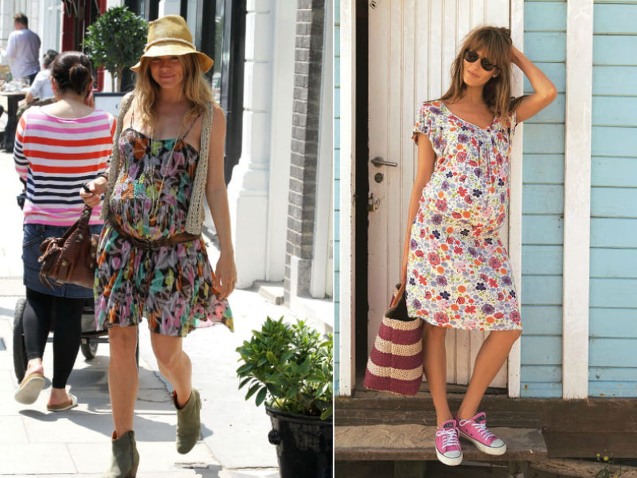 L'été arrive : c'est le moment de sortir la robe fleurie. Sienna Miller a montré la voie pour sa première grossesse en 2012. A vous de poursuivre le chemin avec ce modèle de robe évolutive, signée Vertbaudet (37,95 euros).