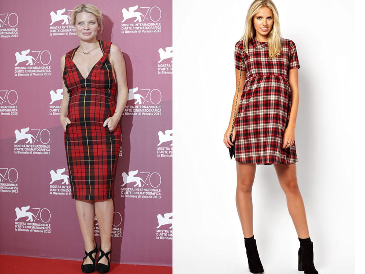 Mélanie Thierry a fait sensation avec cette robe à imprimé écossais. Elle a choisi de mettre en valeur son décolleté et a donc gardé une certaine longueur aux genoux. Mais, plus facile à porter au quotidien avec un gros collant, on la prend un peu plus courte avec un col Claudine et des petites manches comme ce modèle de chez Asos (50,57 € soldée 35,12 €)