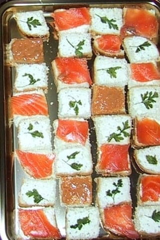 Lors d'une réception, les mini toasts sont parfaits. Ils se préparent la veille pour gagner du temps et se picorent sans faim. On les tartine de fromage, ou de rillettes, et l'on ajoute une tranche de saumon fumé selon les goûts.
