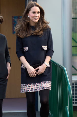 Vous recherchez une tenue pour aller au bureau ? Inspirez-vous de Kate Middleton et de sa robe aux faux airs de Chanel. Signée Madderson, cette robe est élégante à souhait. On aime particulièrement les détails en tweed qui lui apportent une touche originale.
