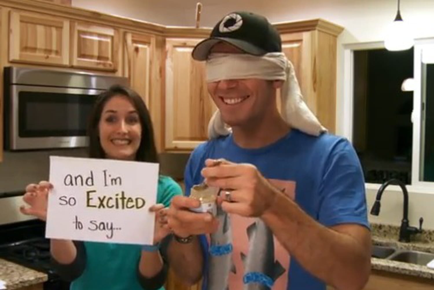 Un jeu de devinettes et de goût. Les yeux bandés, Cory Williams met en bouche différentes saveurs pendant que sa femme présente à la caméra des pancartes avec des messages ("J'aime cet homme", "Je suis impatiente de lui dire...). Pour commencer, elle lui propose de la glace au miel, puis du guacamole et enfin, un petit pot pour bébés, à la banane. Dans un premier temps, Cory pense qu'elle a choisi ce petit pot parce qu'il s'agissait de son parfum préféré lorsqu'il était enfant. "Cela me rappelle des souvenirs", dit-il... Avant de comprendre qu'en fait, sa femme est enceinte et qu'ils vont devenir parents. Un moment très touchant et plein d'émotion. Aujourd'hui encore, en la visionnant, le futur papa ne peut s'empêcher de verser une petite larme de joie : "Je ne peux voir cette vidéo sans pleurer. Nous sommes très heureux ! Nous allons avoir un bébé !", confie-t-il.