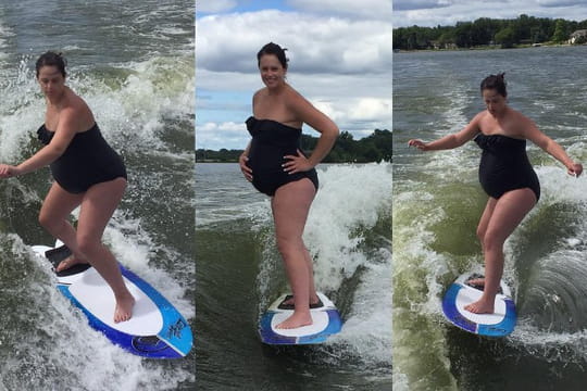 Kolby Fahlsing, une future maman du Minnesota (aux Etats-Unis), a décidé de se relaxer tout en accélérant l'arrivée de son bébé qui se faisait attendre. Enceinte de 40 semaines, la jeune femme s'est filmée en train de surfer sur les vagues, en faisant du wakesurf ! "Les gens confondent le wakesurf avec le wakeboard, le ski nautique ou le tubing", précise Kolby Fahlsing, qui semble maîtriser la discipline et prend soin de ne pas faire d'acrobaties. "Avec le wakeboard, vous allez à environ 40 km/h, contre 14 à 16 km/h en wakesurf. Et on est derrière un bateau spécialement conçu pour ça. Les gens ne comprennent pas forcément qu'il s'agit de quelque chose de très sûr, où l'on va assez lentement et avec peu d'impact. Si je devais tomber dans l'eau, ce serait comme sauter dans la piscine", a-t-elle ajouté.
