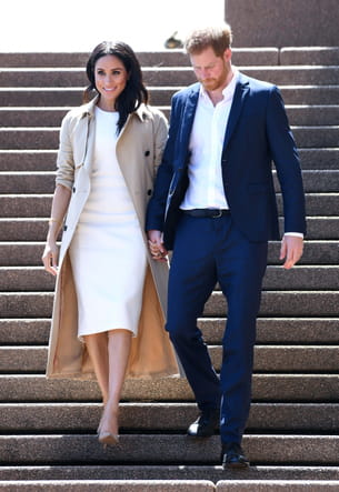 Sur les marches de l'Opéra de Sydney au lendemain de l'annonce de sa grossesse, Meghan Markle était au bras de son époux, le prince Harry. Elle a choisi de sublimer ses rondeurs naissantes en portant une robe près du corps blanc cassé qu'elle avait réchauffé avec un trench-coat de couleur sable.