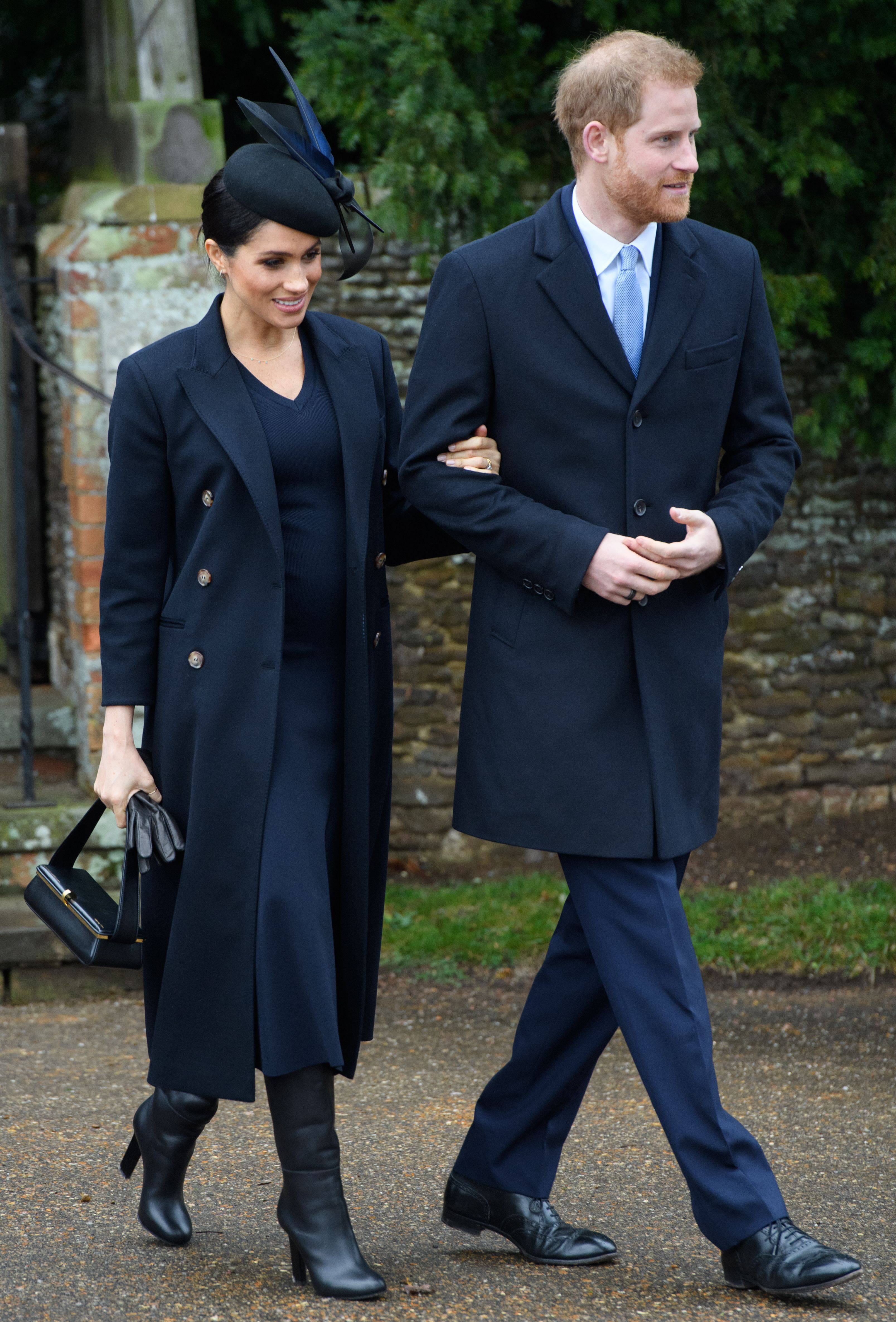 Le 25 décembre 2018, Meghan Markle assistait à la messe de Noël à l'église St Mary's Magdalene de Sandrigha au bras de son époux. En total look noir, la duchesse de Sussex laisse discrètement apparaître ses premières rondeurs de femme enceinte.