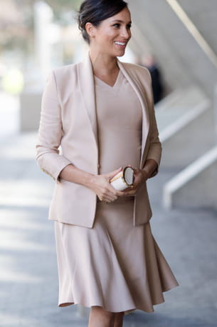 Meghan Markle est chic dans cet ensemble nude © REX Shutterstock SIPA