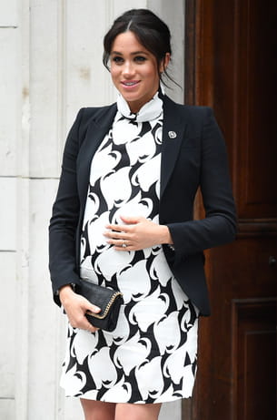 Très distinguée, Meghan Markle a livré quelques conseils en matière de style à l'association SmartWorks dont elle est la marraine. Cet organisme vient en aide aux femmes vulnérables en les soutenant dans la recherche d'emploi ou en leur offrant des tenues. La duchesse de Sussex a d'ailleurs fait don de ses propres vêtements. Vêtue d'une robe noire et blanche, à imprimés graphiques et au prix de 213 euros, Meghan Markle portait également un blazer noir Alexander McQueen, des escarpins Manolo Blahnik, et une pochette Stella McCartney.