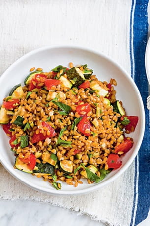 Épeautre, courgette et tomates