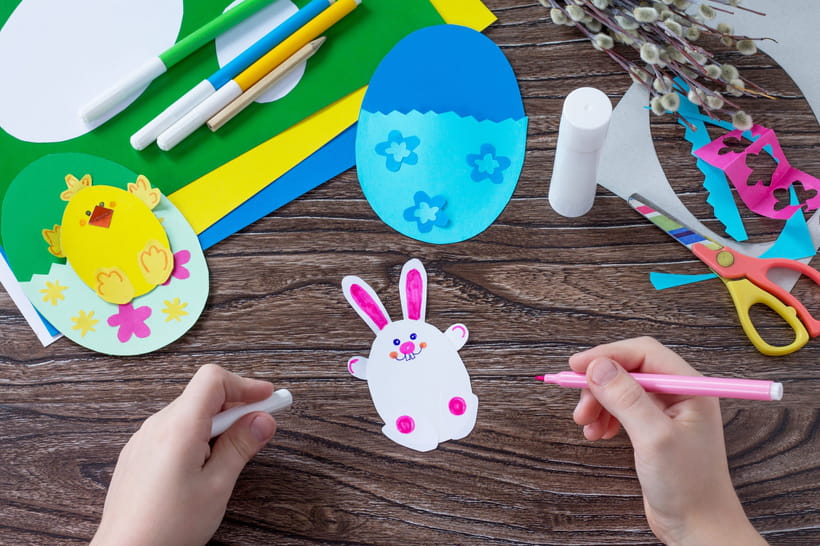 Pâques, c'est aussi la fête des enfants ! Les activités manuelles et les bricolages sont une valeur sûre pour les occuper tout en les amusant. Coloriages de lapins, confection de poussins ou d'œufs à la maison, décoration de gâteaux ou bien encore envoi de cartes personnalisées... Sans oublier l'incontournable chasse aux œufs en chocolats, qui peut s'organiser aussi bien en extérieur, dans un jardin, un parc ou un champ, qu'à la maison. Voici toutes nos activités de Pâques :