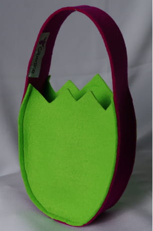 Une chasse aux oeufs de Pâques, ça se prépare... Alors avant que votre bambin ne parte en mission spéciale dans le jardin, munissez-le d'un accessoire indispensable : un sac oeuf ! Il pourra ainsi transporter facilement et sans perdre de temps ses poules et autres lapins en chocolat. Fait main, ce charmant cabas en feutre de laine est adapté pour les plus petits et pourra même être réutilisé après Pâques.