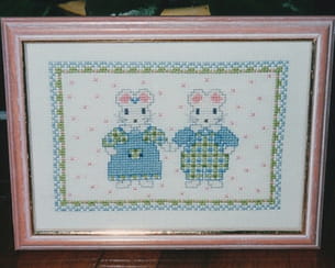 "Ayant déjà réalisé quelques travaux de broderie dans ma jeunesse, j'ai eu envie de me replonger dans cet univers. La tendance du moment étant le travail sur toile Aïda, j'ai commencé par la réalisation de modèles assez simples que j'ai offerts à l'occasion de naissances", explique Danièle.