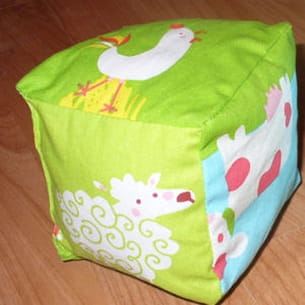 Tout doux et petit, ce cube Découverte imaginé par De fil en aiguille éveillera votre enfant au toucher comme comme au son. Chaque face du carré est illustré par un animal de la ferme. Vendu par paire.