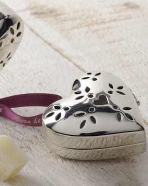 Pour lui dire que vous l'aimez, offrez-lui ce joli cœur en métal argenté. Il renferme deux sucres de parfum solide qui envelopperont son intérieur de douces senteurs. Avec son ruban, ce cœur pourra également s'attacher dans une penderie. Quatre parfums créés pour une ambiance apaisante et chaleureuse sont disponibles.