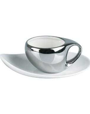Vous voulez éviter les sempiternels services à fleurs ? Optez donc pour ces tasses en céramique chromées et leur sous-tasse en céramique blanche. Avec leurs lignes tout en courbes, effet ultra design garanti !