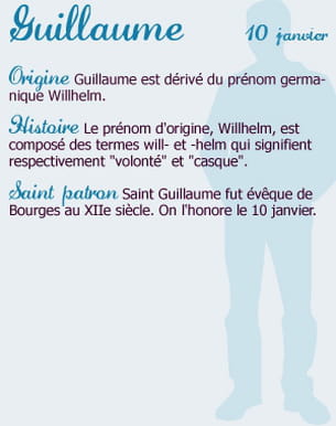 "C'est un prénom noble, synonyme de conquête, de noblesse. Les armes des Guillaume sont la diplomatie et la sincérité, ils sont souvent baba cool et ont un côté gros nounours." Patricia