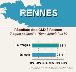 Dans l'académie de Rennes, la moitié des élèves ont eu 40 bonnes réponses ou plus sur 60 en français et 25 bonnes réponses ou plus sur 40 en mathématiques.