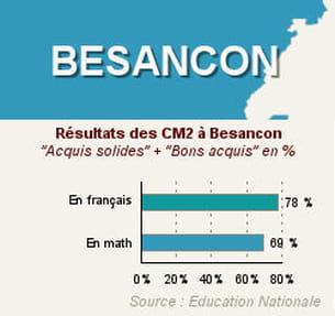 Dans l'académie de Besnacon, la moitié des élèves ont eu 38 bonnes réponses ou plus sur 60 en français et 24 bonnes réponses ou plus sur 40 en mathématiques.
