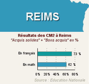 Dans l'académie de Reims, la moitié des élèves ont eu 37 bonnes réponses ou plus sur 60 en français et  22 bonnes réponses ou plus sur 40 en mathématiques.